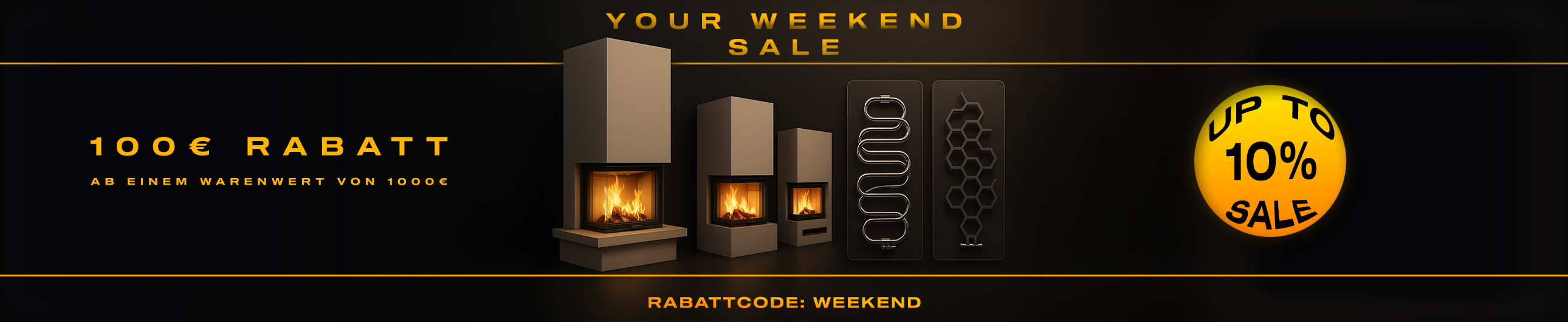 Nur bis Sonntag, 05.10.2025, 23:59 Uhr profitieren Sie von attraktiven Preisvorteilen auf Designheizkörper, Kamineinsätze und Kaminbausätze. Mit unseren Wochenend-Rabattcodes holen Sie sich hochwertige Modelle zu Aktionspreisen und bringen stilvolle Wärme in Ihr Zuhause.